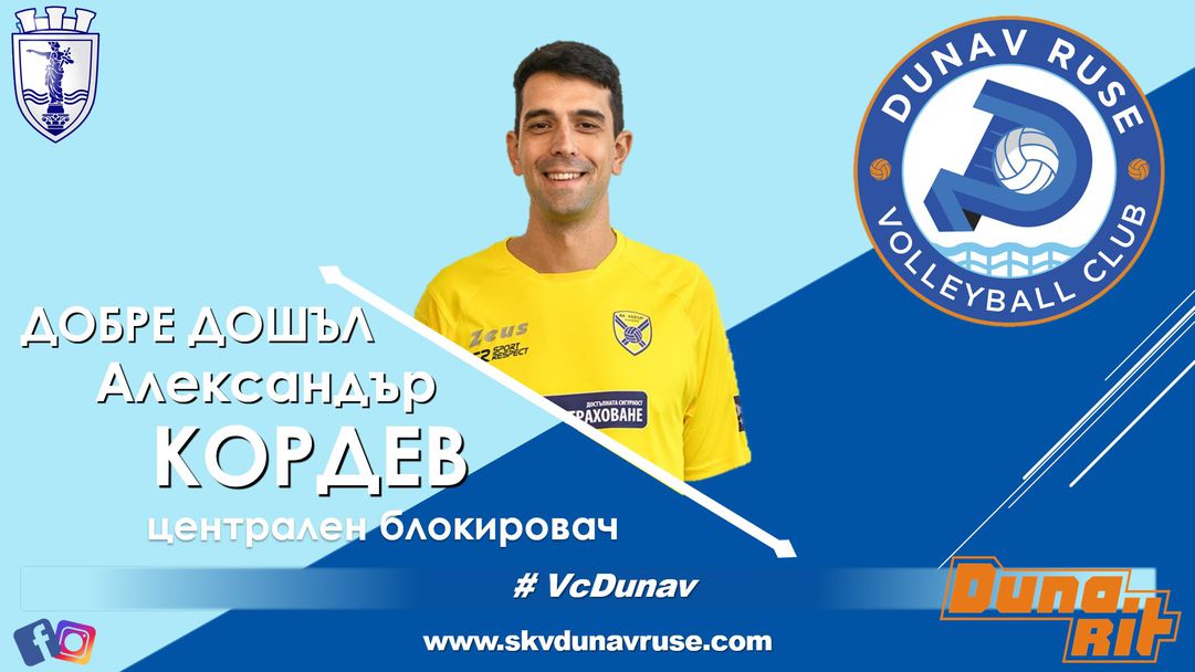 Централният блокировач Александър Кордев се присъедини към волейболния отбор на Дунав (Русе).