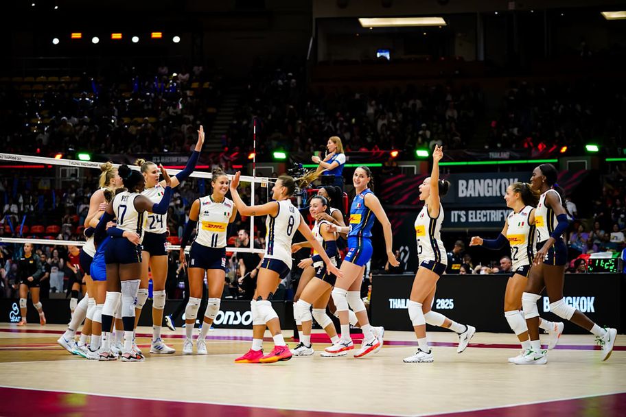 Олимпийският шампион Италия се класира безпроблемно за 1/4-финалите на Световното първенство за жени в Тайланд. Момичетата на Хулио Веласко биха повече от категорично Германия с 3:0 (25:22, 25:18, 25:11) в мач от 1/8-финалите на Мондиала, игран този следобед пред около 3500 зрители в зала "Хуамарк" в Банкок.