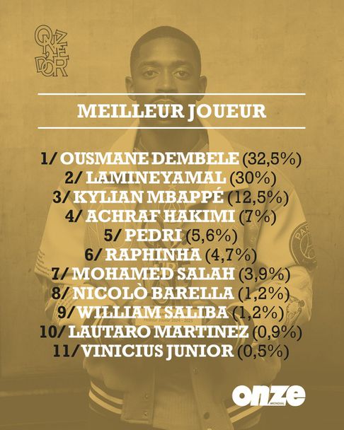 Във вота той изпреварва с малко Ламин Ямал (Барселона), който му е основен съперник и за "Златната топка". Дембеле е с 32,5% от гласовете срещу 30% за испанеца. В избора гласуват читатели на списанието "Онз Мондиал".