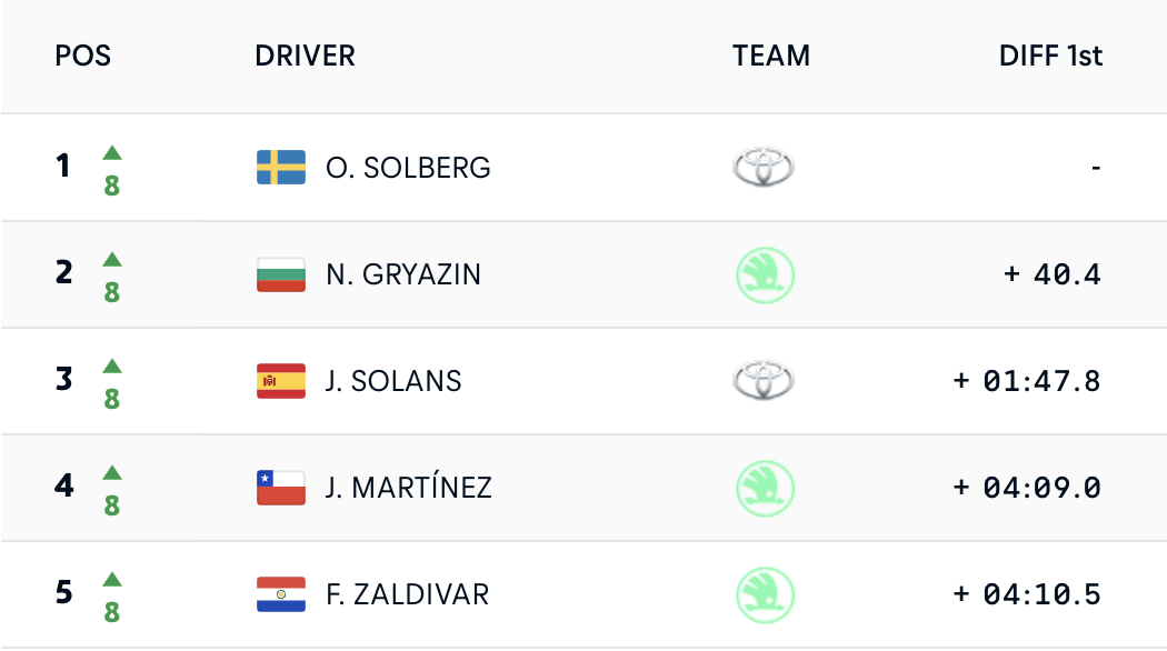 За Солберг надпреварата край Консепсион беше последната, в която той се бореше за точки през годината. След победата си в Чили шведът има актив от 135 точки, който няма как да бъде подобрен от неговите съперници до края на сезона, въпреки че част от тях, включително и Грязин, могат да печелят точки в повече от едно от оставaщите три ралита.