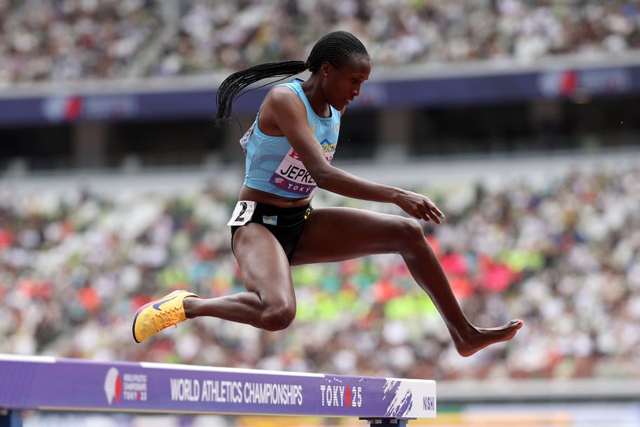 Представителката на Казахстан Дейзи Джепкемей участва в квалификациите на 3000 метра стийпълчейз на Световното първенство по лека атлетика в Токио (Япония), въпреки че пресече финалната линия само с един шпайк.