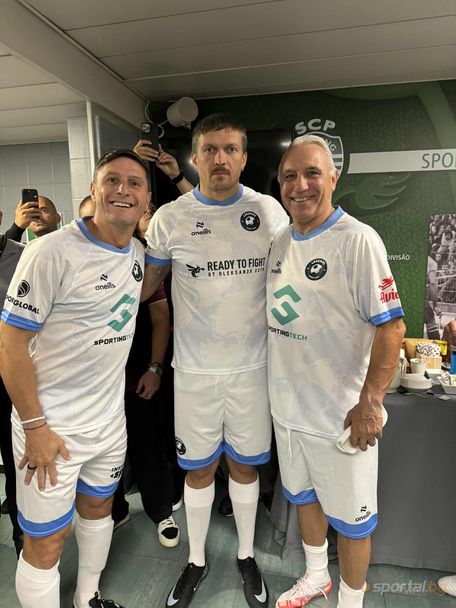Олимпийският шампион от Лондон 2012 и абсолютен световен шампион в бокса взе участие в благотворителния мач в Лисабон между легендите на португалския футбол и световни такива, сред които "Ел Булгаро" и "Ил Капитано". В минутите преди излизането от съблекалнята, Усик се снима с Камата и аржентинеца.