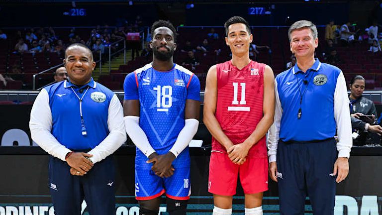 Хавиер Консепсион изведе Куба напред с 8:6. Ас на Хулио Гомес - 9:6. Блокада на Мика Ма'а 12:14. Ас на Майкъл Найдж - 14:15. Пайп на Джейкъб Пастьор - 15:17. Кайл Енсинг намали до 18:20. Джейкъб Пастьор атакува без блокада от зона 4 за 19:20. Хесус Анхел Крус взе прекъсване за Куба. Джейкъб Пастьор атакува в аут и Куба поведе с 22:19. Карч Кирали взе прекъсване за САЩ. Мигел Анхел Лопес атакува по тройната блокада за 23:19. Мика Ма'а пусна технично за 20:23. Купър Робинсън атакува от зона 4 по правата за 21:23. Хесус Анхел Крус взе второ прекъсване за Куба. Купър Робинсън атакува от зона 4 по острия диагонал за 22:23. Кубинците докоснаха мрежата и равенство при 23:23. Робертланди Симон атакува в центъра и Куба стигна до геймбол при 24:23. Двойна американска блокада възстанови равенството - 24:24. Американците стигнаха до мачбол при 25:24. Пайп на Джардан Юърт и 26:25. Купър Робинсън атакува успешно и САЩ спечели четвъртата част с 27:25 и мача с 3:1 гейма.