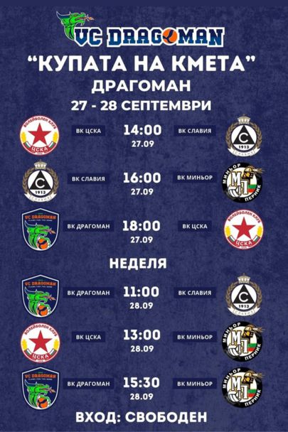 Женските отбори на ЦСКА, Славия и Миньор (Перник) гостуват в Драгоман за третото издание на турнира "Купата на кмета". Надпреварата ще се проведе на 27 и 28 септември (събота и неделя).