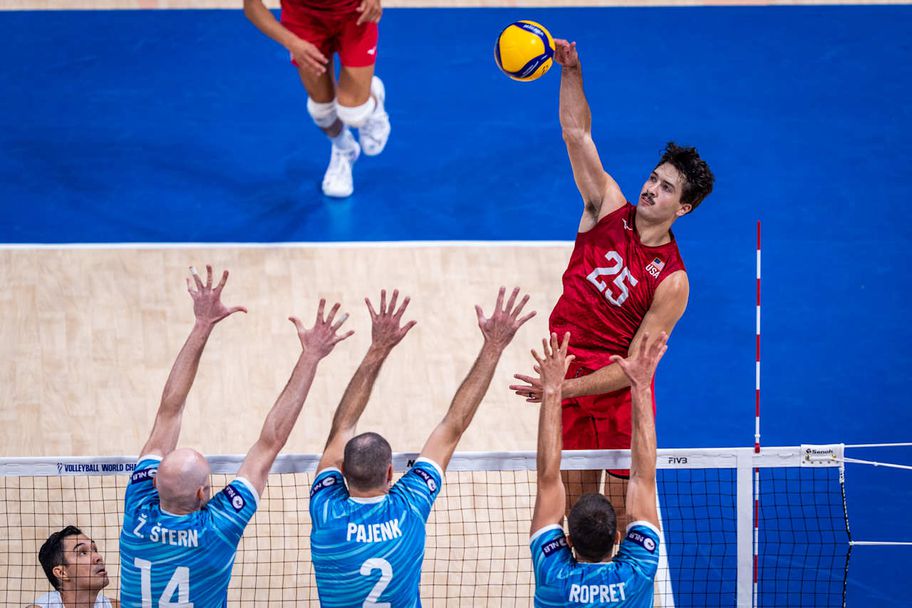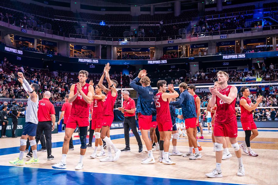 Волейболистите от националния отбор на САЩ ще играят на 1/4-финалите на Световното първенство във Филипините. Воденият от Карч Кирали тим обърна и се наложи над Словения с 3:1 (19:25, 25:22, 25:17, 25:20) в среща от 1/8-финалите на Мондиал 2025, играна този следобед пред около 5000 зрители в залата на SM Mall of Asia в Пасай Сити.