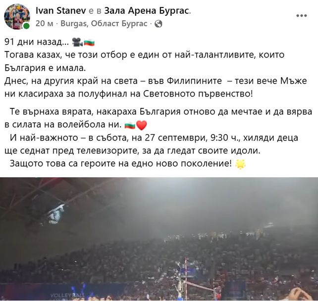 Защото това са героите на едно ново поколение!", написа Станев в своя профил в социалните мрежи.