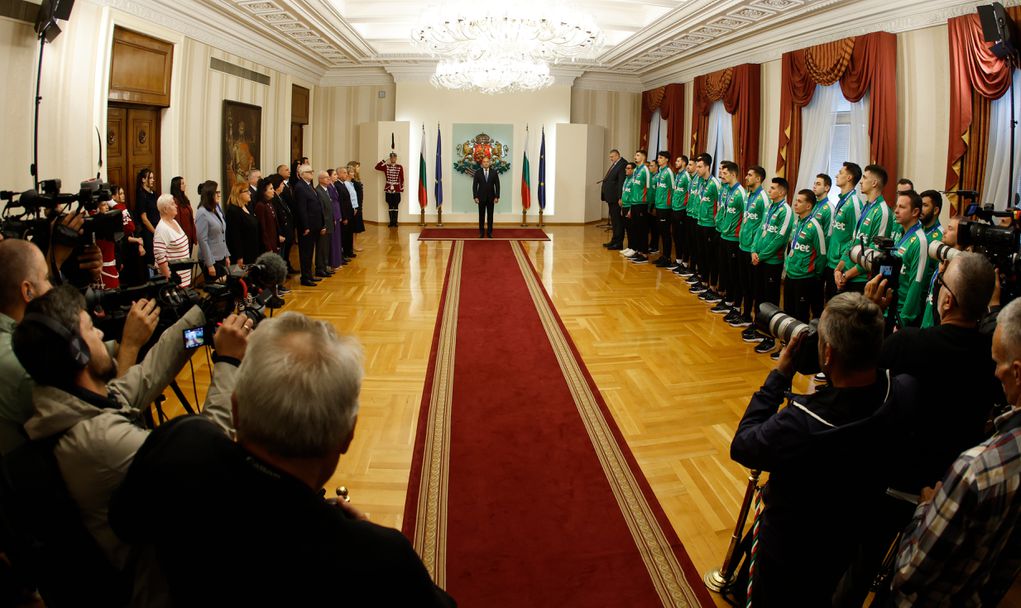 Президентът Румен Радев удостои с почетни плакети състезателите от мъжкия национален отбор на България по волейбол, треньорския щаб и Българската федерация по волейбол. Събитието се проведе от 11.00 часа на церемония в Гербовата зала на "Дондуков" 2 и бе излъчено на живо от Sportal.bg.