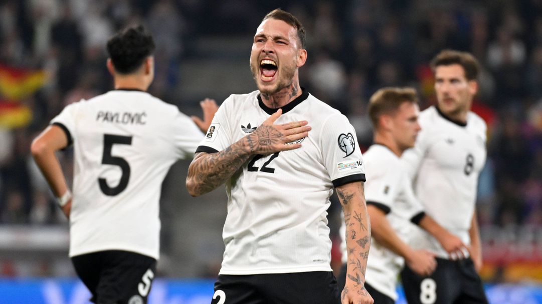 Така треньорът направи няколко промени в сравнение с победата над Северна Ирландия с 3:1 в предишния мач, като се върна към схемата с четирима защитници. Йошуа Кимих отново бе върнат на десния бек, а след дълго отсъствие в отбрана се завърна Нико Шлотербек, който партнираще на Йонатан Та, който пак бе титуляр. Ник Волтемаде водеше атаката, а зад гърба му действаха Флориан Виртц, Серж Гнабри и Карим Адейеми, който замени Джейми Левелинг. Двойката опорни халфове бяха полузащитниците на Байерн (Мюнхен) Леон Горетцка и Александър Павлович.