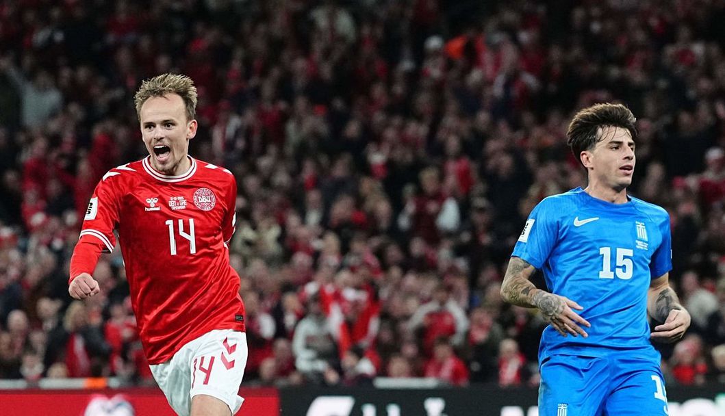 Дания направи нова важна крачка към класиране на Мондиал 2026. Скандинавците се наложиха с 3:1 над Гърция в Копенхаген и се изравниха на върха в група "С" заедно с Шотландия. За "елините" пък поражението означава, че вече нямат и теоретични шансове за едно от първите две места.