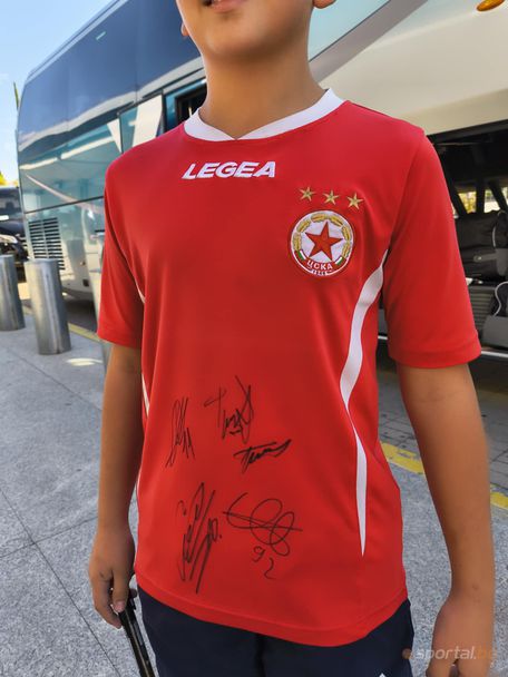 Върху фланелката на "армейците" се разписаха президентът на БФС Георги Иванов, Кирил Десподов, Станислав Шопов и др. Малкият фен беше с баща си, като двамата пожелаха успех на българския тим в утрешната световна квалификация срещу Испания.