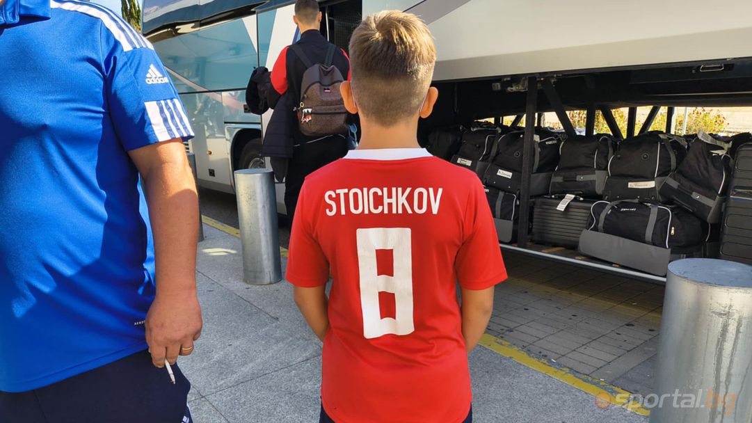 Малък запалянко на ЦСКА, с фланелка на "червените" с номер 8 и името на Христо Стоичков, посрещна националния отбор във Валядолид. Малчуганът на име Георги носеше в себе си маркер, с който събра автографите на част от "лъвовете".