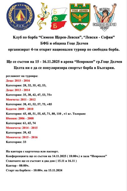 Припомняме, че миналата година над 400 млади таланти в свободната борба премериха сили, а сега се очаква спортистите да бъдат още повече. След края на турнира в Гоце Делчев ще останат борците на САЩ, Казахстан и Армения за спортен лагер.