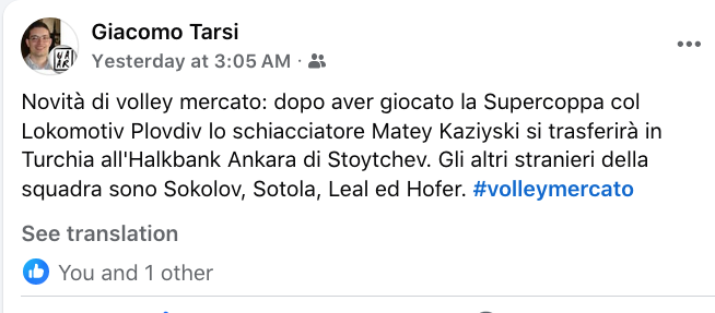 Новината за преминаването на Матей Казийски в Халкбак бе потвърдена и от главния редактор на най-популярния волейболен сайт в света и Италия Volleyball.it - Лука Муцоли.