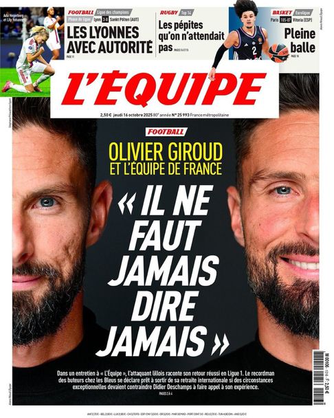 “Никога не бива да казваш “никога“, защото това е националният отбор на Франция и защото е дълг да защитаваш фланелката на своята страна. Ако настъпи още по-голяма криза и в даден момент селекционерът изпадне в трудна ситуация… ще трябва да се помисли. Аз ще съм тук. Но това наистина е много малко вероятно. Трябва да сме сериозни”, заяви Жиру пред “Екип”.