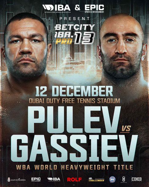 Погледите на спортния свят ще бъдат приковани към бляскавия Дубай, където IBA и Epic Sports & Entertainment ще представят историческа вечер на бокса, оглавена от сблъсъка за световната титла на WBA в тежка категория между Кубрат Пулев (32-3, 14 KO) и Мурат Гасиев (32-2, 25 KO), част от картата IBA Pro 13.