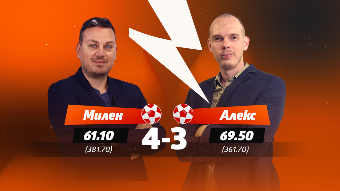 Чулев сподели своя подход при изготвянето на състава, стратегиите си за капитан и ротации, както и наблюдения върху тенденциите в Премиър лийг. Напрежението в играта расте, а знаете, че победителят в нашата мини-лига в края на сезона ще получи за награда фланелка на любимия му английски отбор — страхотна допълнителна мотивация за участниците! В студийната надпревара между водещите Милен и Алекс също не липсва интрига. След четирите поредни победи на Милен, Алекс записа трети последователен успех, с което скъси дистанцията и върна напрежението в дуела между двамата.