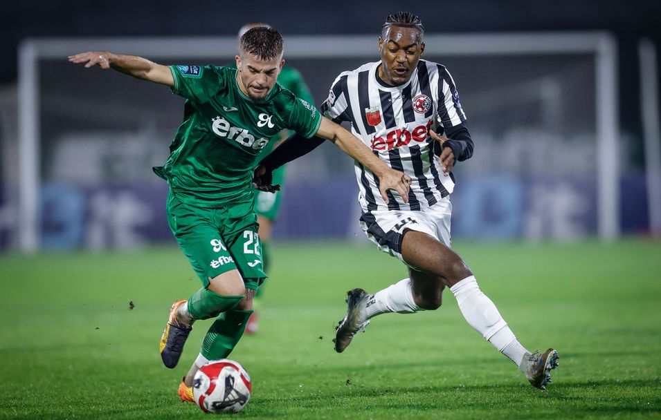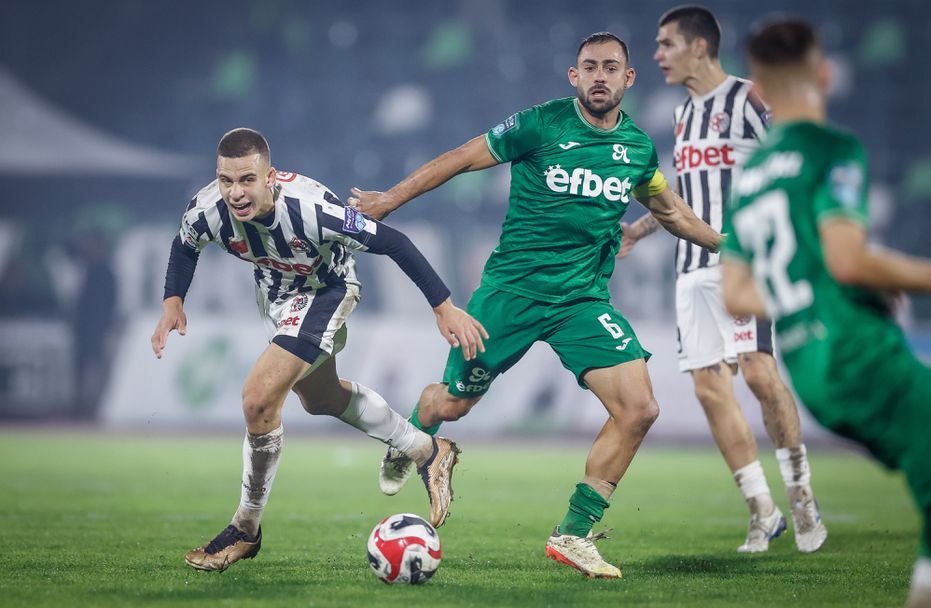 В средата на първото полувреме Иван Аврамов проби в пеналтерията на "зелените" и шутира от малък ъгъл, но неточно. В 26-ата минута Панайот Пасков се извиси над всички при центриране от корнер, но и неговият опит не се увенча с успех.