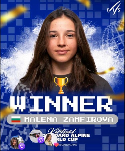 Голямата ни звезда при жените в сноуборда Малена Замфирова получи поредното страхотно международно признание. Феновете на алпийския сноуборд от цял свят гласуваха за българката и тя спечели виртуалната Световна купа на FIS Snowboarding в Instagram. В големия финал любителите на този атрактивен спорт дадоха своя глас за Малена, а втора остана легендарната Рамона Хофмайстер. През септември в българския финал на виртуалната Световна купа при мъжете феновете избраха първи да е Радослав Янков, а втори Тервел Замфиров.