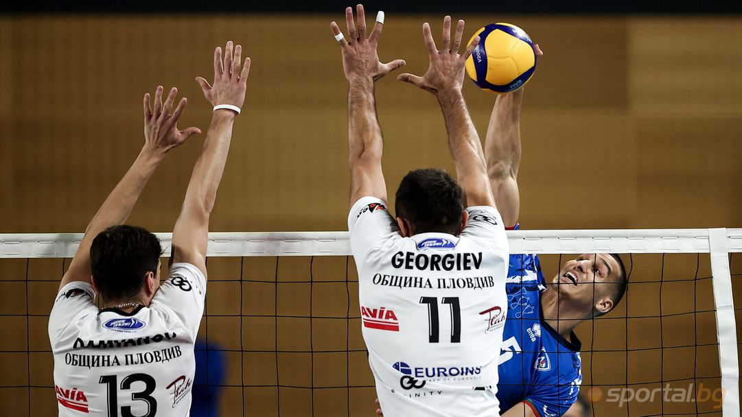 Ас на Тодор Вълчев даде преднина на Локомотив от 2:0 в началото на финала. Атака по острия диагонал на единичен блок за Матей Казийски и 3:1 за пловдивчани. Атака на Юлиан Вайзиг - 2:3. Блокаут на Гордан Люцканов - 3:4. Блокада на Юлиан Вайзиг спря атака на Жулиен Георгиев и равенство при 4:4. Блокаут на Гордан Люцканов и Левски поведе с 5:4. Жулиен Георгиев атакува в мрежата 5:7. Ас на Жулиен Георгиев възстанови равенството при 8:8. Блокада на Тодор Скримов спря атака на Матей Казийски и Левски дръпна с 12:9. Найден Найденов взе прекъсване за Локомотив. Блокаут на Матей Казийски и 10:12. Блокада на Матей Казийски спря атака на Юлиан Вайзиг и ново равенство 13:13. Мощна атака на Гордан Люцканов - 14:13 за "сините". Ас на Светослав Гоцев и 15:13. Жулиен Георгиев възстанови равенството - 15:15. Гордан Люцканов се справи с блокадата за 17:16. Ас на Гордан Люцканов направи резултата 18:16. Великолепна атака на Тодор Скримов над блокадата от зона 4 - 19:17. Тодор Скримов игра по блокадата за 20:18. Контраатака на Матей Казийски възстанови равенството при 20:20. Матей Казийски отигра много трудна топка срещу тройна блокада - 21:21. Гордан Люцканов атакува мощно по диагонала от зона 4 - 22:21. Матей Казийски атакува над блокадата по диагонала от зона 2 - 22:22. Тодор Вълчев атакува по диагонала от зона 4 и Локомотив поведе с 23:22. Николай Желязков взе прекъсване за Левски. Блокада на Лазар Бучков срещу атака на Тодор Вълчев и равенство 23:23. Блокаут на Тодор Вълчев изведе Локомотив до геймбол при 24:23. Николай Желязков взе второ прекъсване за "сините". Гордан Люцканов атакува технично за равенство 24:24. Мощна атака на Тодор Скримов по диагонала от зона 4 - 25:25. Нова атака на Тодор Вълчев от зона 4 по диагонала - 26:25. Атака на Матей Казийски по диагонала от зона 4 и Локомотив спечели първата част с 28:26.