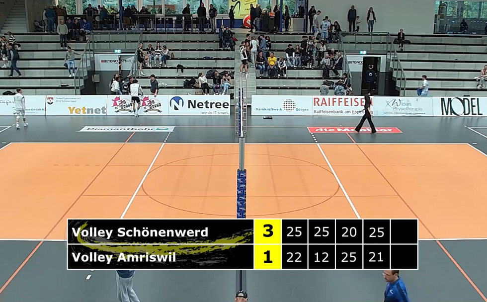 24 часа по-късно Шьоненверд победиха у дома отново шампиона Амрисвил с 3:1 (25:22, 25:12, 20:25) в мач от първия кръг на шампионата на Швейцария.