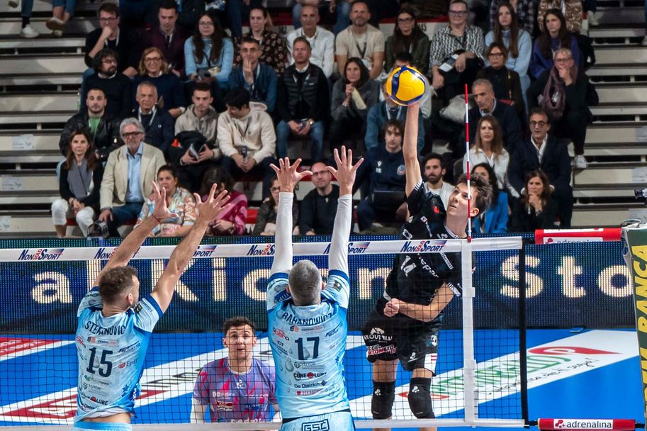 Натан Ферал (1 ас, 49% ефективност в атака - +1) и Марко Седлачек (1 блок, 54% ефективност в атака, 24% перфектно и 56% позитивно посрещане - +8) реализираха по 21 точки за Кунео.
