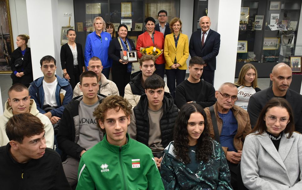 Голямата спортистка връчи медала на проф. Петков, като му благодари за много важната роля на НСА в живота и в спортната ѝ кариера. От своя страна ректорът поднесе на шампионката сертификат за дарението, значка на Академията и сувенири.