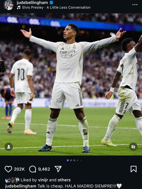 „Дa се говори е лесно. Хайде, Реал! Завинаги!“, написа английският национал в профила си в Instagram. Той също така публикува няколко снимки, включително една с празненството си след гола за 2:1.