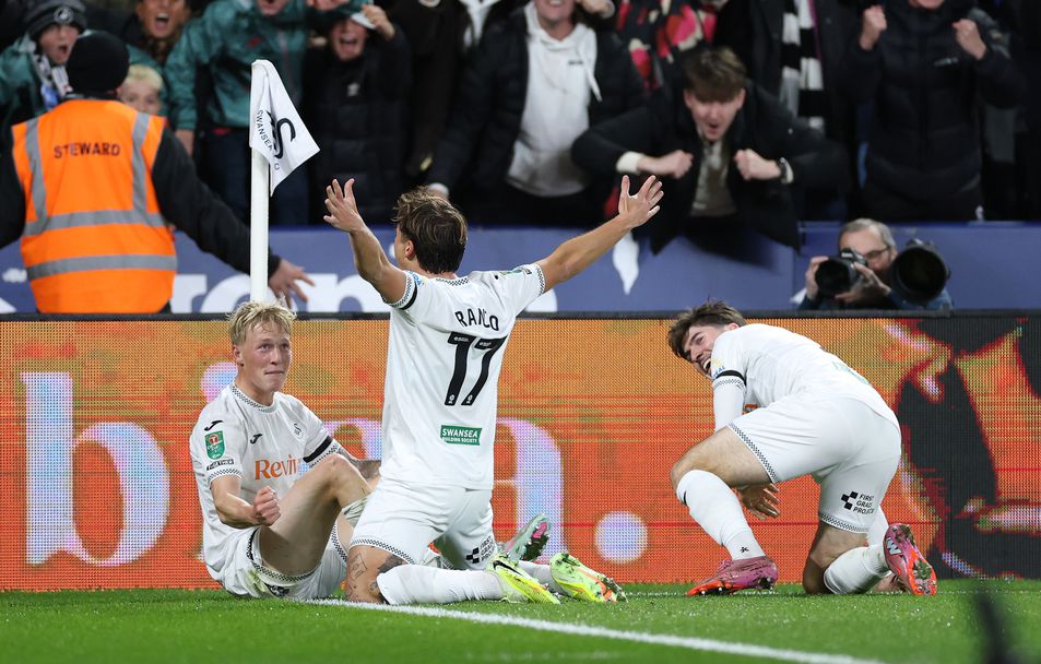 Манчестър Сити спечели с 3:1 гостуването си на Суонзи от 4-тия кръг на "Карабао Къп". Двубоят на "Либърти Стейдиъм" се оказа неочаквано труден за тима на Пеп Гуардиола. Гонсало Франко даде аванс на домакините с красиво попадение в 12-тата минута, но Жереми Доку изравни малко преди почивката, а Омар Мармуш (77') и Раян Шерки (90+3') осигуриха успеха на "гражданите", които са осемкратен носител на трофея.