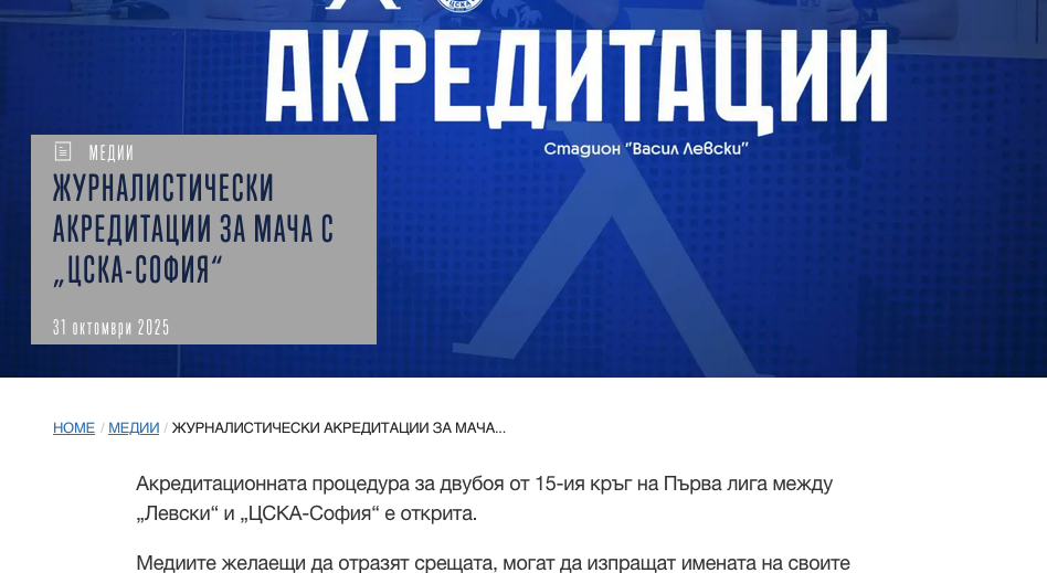 В поредица от публикавани за въпросния сблъсък статии, официалният сайт на “сините” твърди, че ще играе срещу ЦСКА - София.