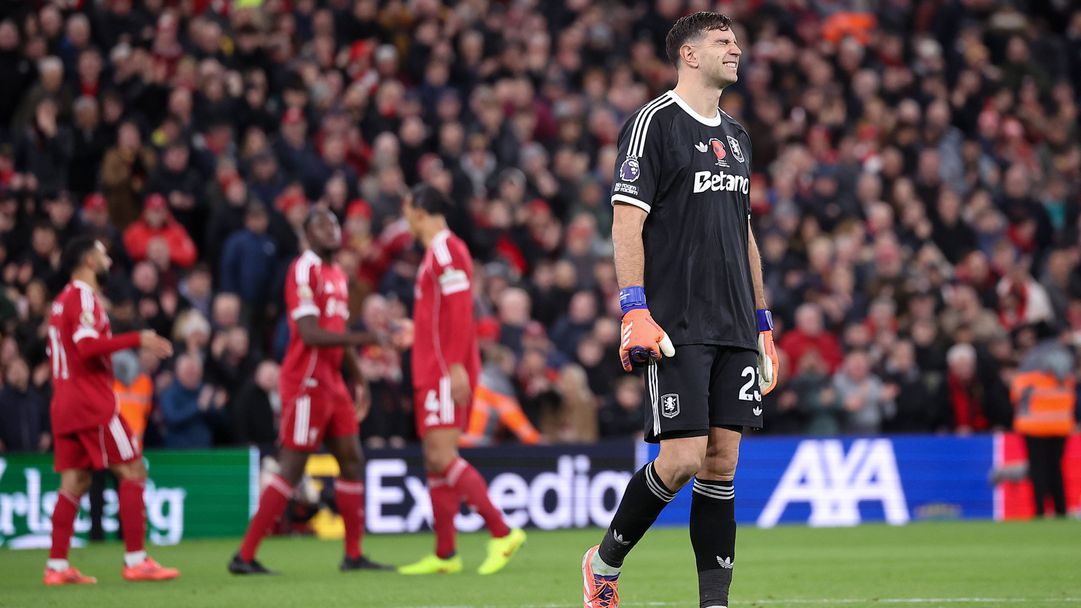 Натискът на Ливърпул все пак даде резултат. В началото на добавеното време на първата част Емилиано Мартинес направи фатална грешка. В опит да намери бързо съотборник той подаде на Салах. Египтянинът се възползва от подаръка и веднага прати топката в мрежата.