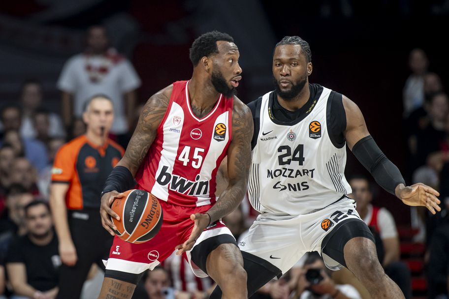 Отборът на Олимпиакос с Александър Везенков в състава си победи с 80-71 Партизан в супердерби от деветия кръг на Евролигата.