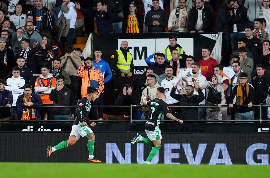 Бетис поведе на Валенсия с 1:0 като гост, но допусна изравняване за крайното 1:1 в мач от испанския елит, с което разликата от четвъртото място се увеличи на пет точки след този 12-ти кръг. Кучо Ернандес (74’) вдъхна надежди на севилци, че ще триумфират и в този двубой, но Луис Риоха попари очакванията им в 82-рата.
