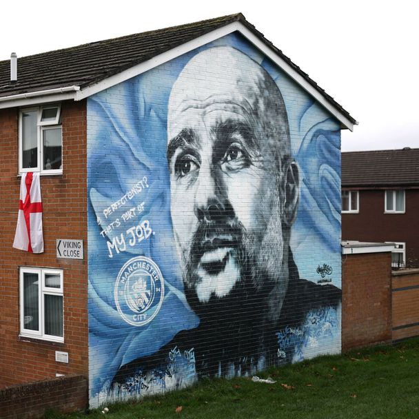 Манчестър Сити разби Ливърпул през уикенда в дербито на 11-ия кръг на Премиър лийг, с което “гражданите” напомниха за добрите стари времена, в които диктуваха реда на Острова. Това провокира фенове от Манчестър да изрисуват фасадата си с лика на мениджъра на местния гранд Джосеп Гуардиола. Именно класическата победа с 3:0 срещу мърсисайдци бе мач номер 1000, който специалистът изведе тима си начело.