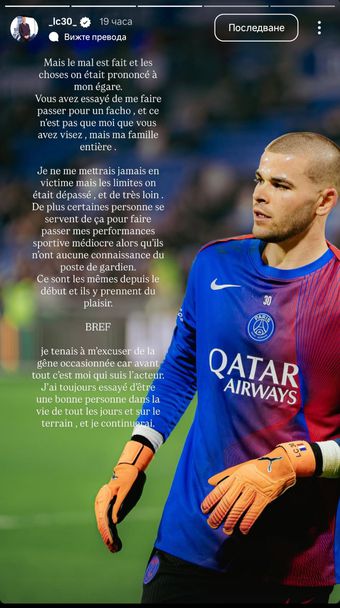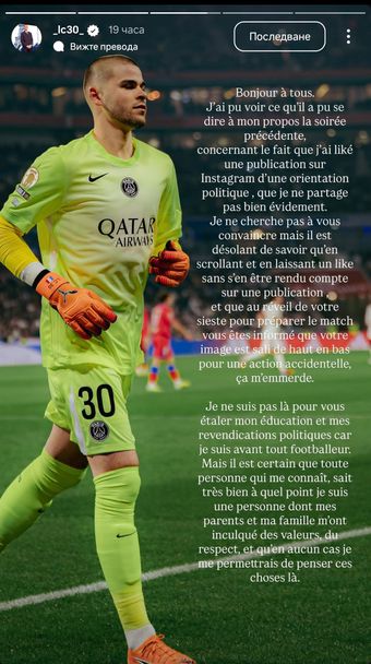 Вратарят на Пари Сен Жермен Люка Шевалие зае позиция относно възникнали обвинения срещу него, свързващи го с крайно десните политически движения във Франция, подчертавайки, че всичко е започнало от едно... случайно харесване.