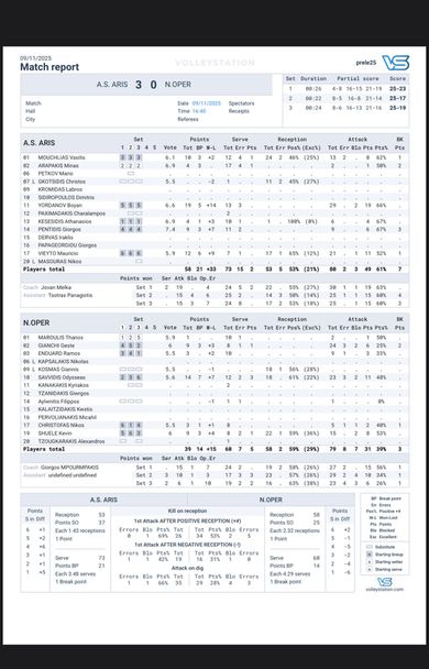 Арис спечели убедително у дома дербито на втората лига в Гърция срещу Опер с 3:0 (25:23, 25:17, 25:19) в мач от втория кръг.