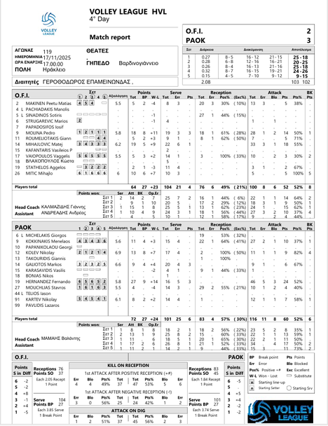 ПАОК е на шестата позиция с 5 точки (2 победи, 2 загуби), ОФИ е на трета позиция със 7 точки и същия баланс.