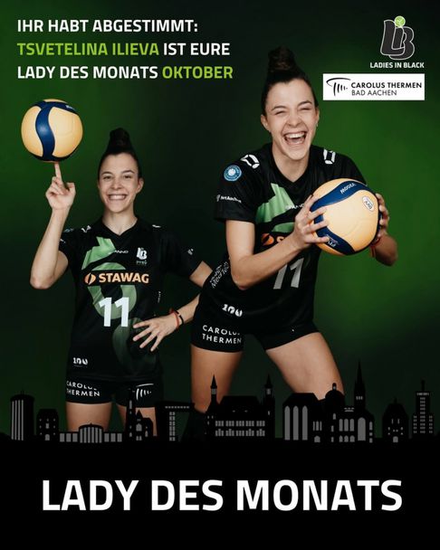 Българската волейболистка Цветелина Илиева, която преди два сезона попадна в разширения състав на женския национален отбор, а от този сезон играе за германския Ladies in Black Aachen, прави отлично представяне в първенството на Бундеслигата, като в предпоследния мач отбеляза 26 точки за победата на своя тим и бе избрана за MVP. Последва нова домакинска тригеймова победа над новака Боркен с 3:0, като тимът на Аахен се изкачи на четвърто място във временното класиране. А нашето момиче, която играе на поста посрещач, е с основен принос за успеха. Феновете на клуба пък избраха родната представителка за „Лейди на месец октомври“.