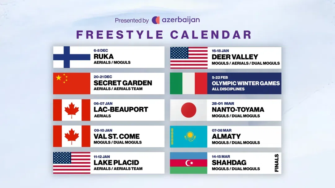 Този сезон бележи и началото на нова глава за фрийстайл ските чрез глобалното партньорство на ФИС с Азербайджан, който става официален титулярен партньор на Световната купа по фрийстайл в дисциплините бабуни и въздушна акробатика. Като част от първото по рода си глобално партньорство на ФИС с туристическа дестинация, това сътрудничество има за цел да засили видимостта и подкрепата за тези дисциплини и да помогне за представянето на фрийстайл ските пред нови аудитории по света. Партньорството добавя допълнителен импулс към сезон, който и без това е изпълнен с очакване и възможности.