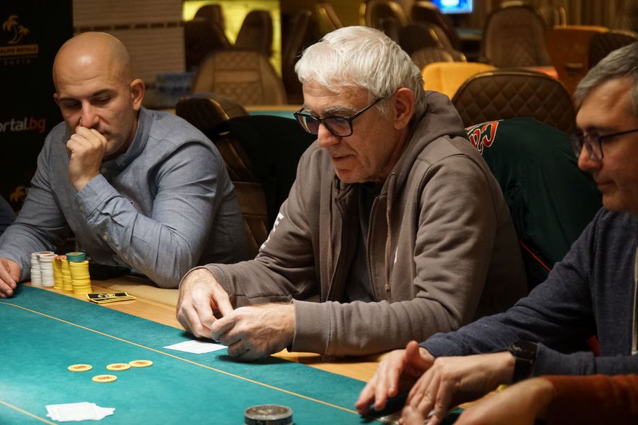 Георги Попвасилев (на снимката) , останал с последните си 11 блайнда, влезе ефективно all-in от ранна позиция. Чемплидърът към момента, Йордан Чемширов, плати от блайндовете и двамата стигнаха до шоудаун.