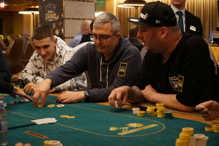 Йордан Чемширов отвори от ранна позиция до 80 000, екшънът стигна до Иван Денев на големия блайнд, който след кратко премисляне бутна целия си стак — 486 000 all-in. Чемширов го закара в танка, но след няколко секунди направи кол.