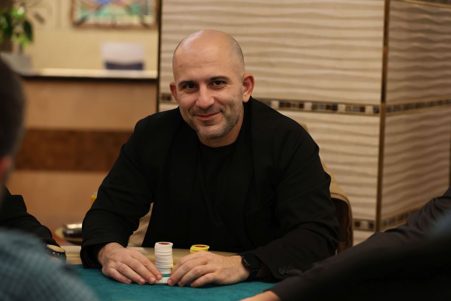 Евгени „EvaluatePoker“ Арков (на снимката), един от bwin Legends инфлуенсърите и популярно лице в покер сцената, остана с малко над 10 големи блайнда и реши да направи своя ход. Той влезе all-in от малкия блайнд с A♣ T♥, но беше посрещнат от Тихомир Янев на големия блайнд, който обръща по-силната ръка – A♠ K♦.