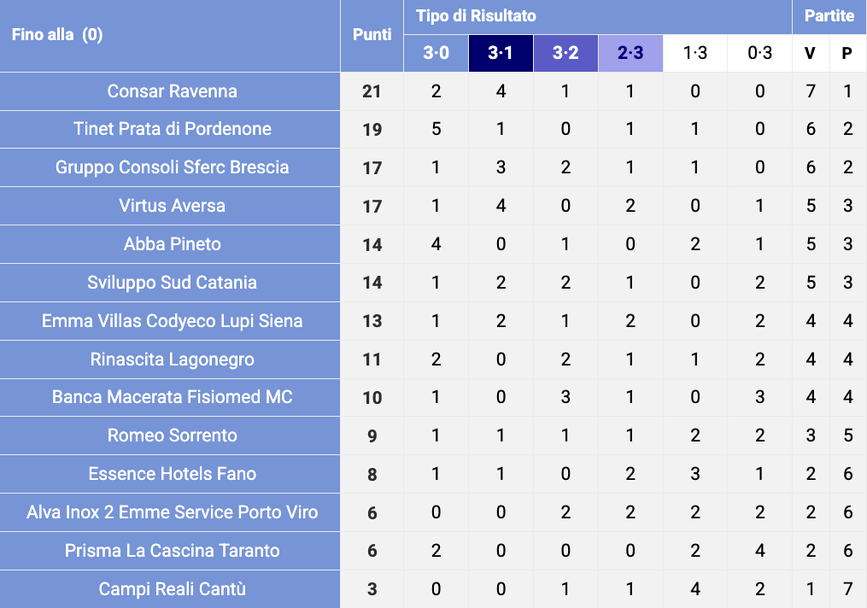 Равена има 21 точки в актива си (7 победи, 1 загуба). Бреша слезе на трета позиция със 17 точки (6 победи, 2 загуби).