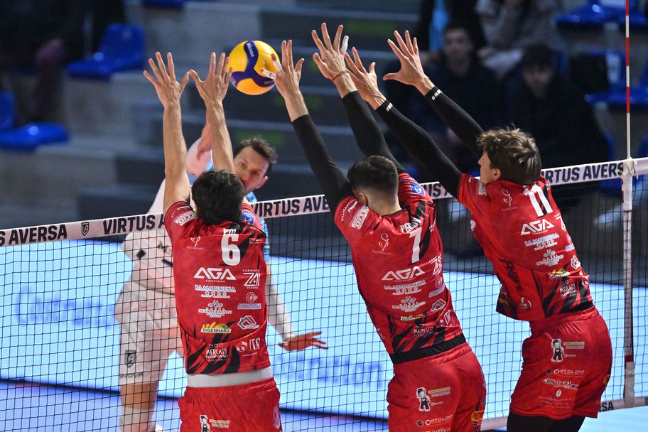 Отборът, воден от Никола Еспозито, отстъпи при гостуването си на Виртус (Аверса) с 1:3 (26:28, 25:23, 23:25, 17:25) в мач от осми кръг, изигран в "Палаякадзи" в Аверса.
