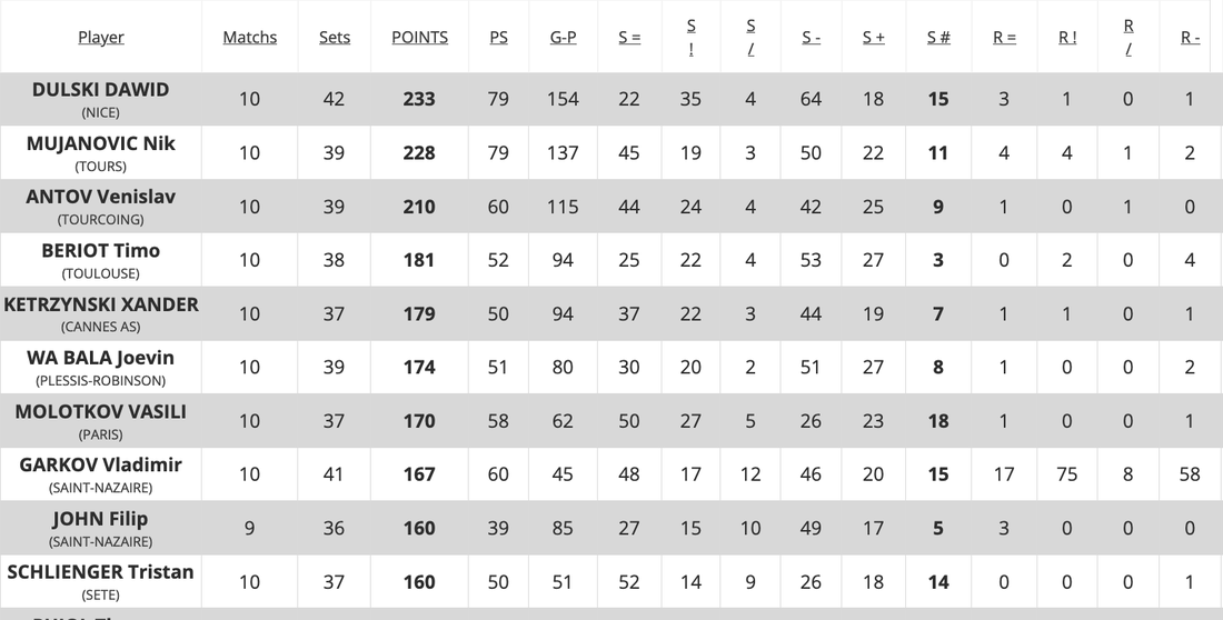 В класирането при реализаторите със своите 210 точки Венислав Антов е 3-и след Давид Дулски (Ница) с 233 точки и Ник Муянович (Тур) с 228 точки.