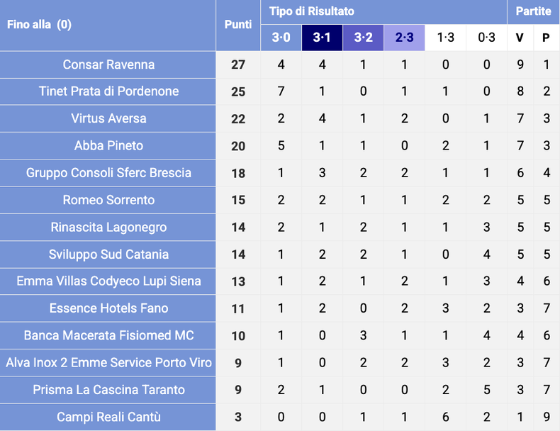 Равена има 27 точки в актива си (9 победи, 1 загуба) и е лидер в Серия А2. Катания е на 8-ата позиция с 14 точки (5 победи, 5 загуби).