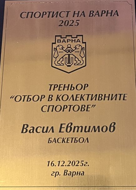 Старши треньорът на варненци Васил Евтимов пък бе отличен като "Треньор на годината".