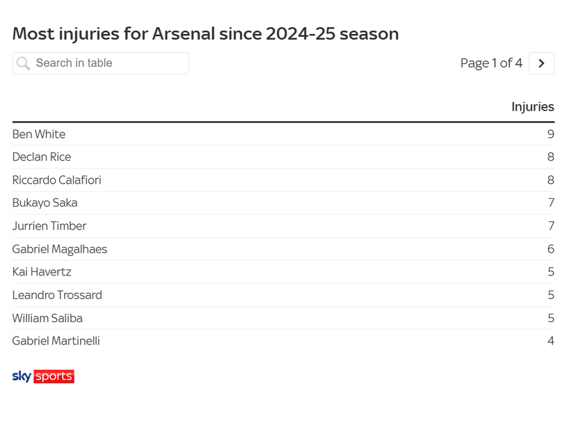 Интересното е, че именно Уайт е играчът с най-много травми от началото на миналия сезон - 15. След него са Деклан Райс и Рикардо Калафиори с по осем. Подреждането обаче е друго по отношение на пропуснатите дни заради една голяма контузия. Там на първата позиция е вече бившия играч на Арсенал Такехиро Томиясу, който е пропуснал 219 дни. Габриел Жезус не е бил на разположение 132 дни, а Кай Хавертц - 118.