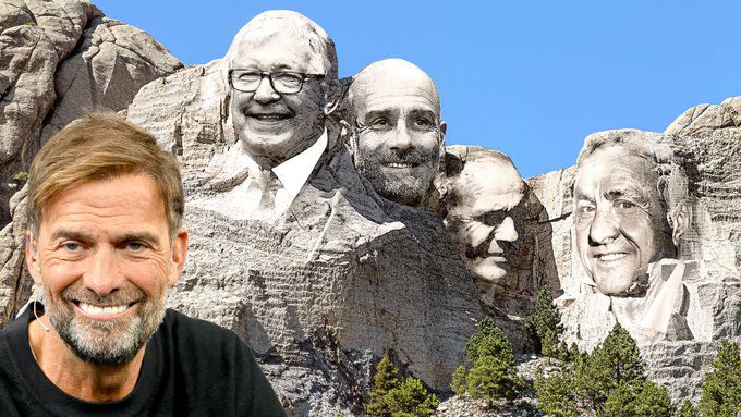 Бившият мениджър на Ливърпул Юрген Клоп назова четиримата най-добри треньори за всички времена, чиито лица би поставил на своя треньорски Маунт Ръшмор. Той се спря на Йохан Кройф, Джосеп Гуардиола, сър Алекс Фъргюсън и Бил Шанкли.
