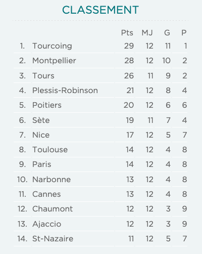 Сен Назер е на последната 14-а позиция във временното класиране с 11 точки (5 победи, 7 загуби). Нарбон е 10-и с 13 точки (4 победи, 8 загуби).