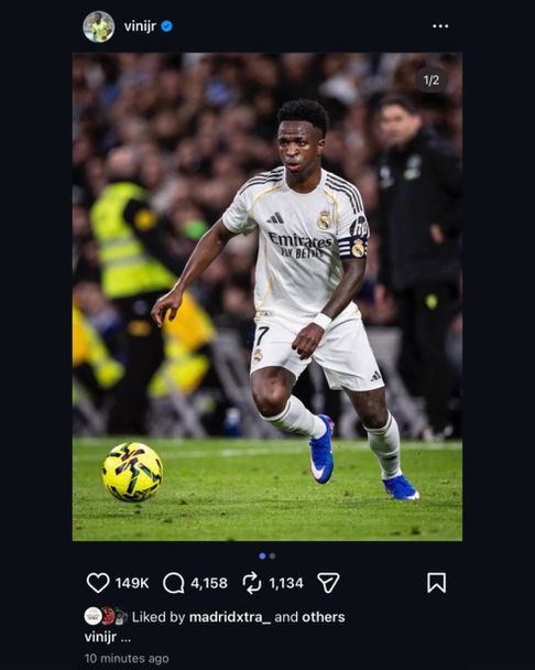 Малко след последния съдийски сигнал дойде и реакцията. Прибирайки се в съблекалнята, Винисиус премахна профилната си снимка в Инстаграм с фланелката на Реал Мадрид. Преди това на нея той държеше екипа. Замени я със своя снимка... с екипа на Бразилия. Всичко това се случи почти мигновено, след като публикува пост с капитанската лента и едно несъществуващо, но същевременно съществуващо послание: „...“. Три точки. Кратко, лаконично. Загадъчно. И следователно, отворено за тълкуване. Така се слага край на един епизод, който неизбежно обещава да има продължение. Винисиус е в центъра на бурята.